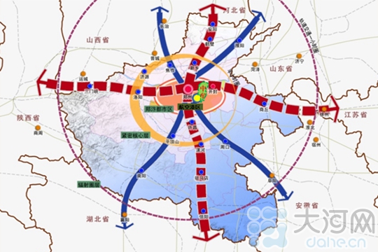省会郑州、古都开封通过他联姻,中原经济区、郑州都市区、航空港经济综合实验区“三区”在他这里牵手,郑东新区、汴西新区、经济技术开发区、平原新区“四区”如众星捧月般将他托起。