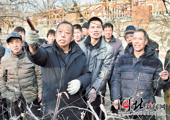 2016年1月,在内丘县岗底村,李保国(中)在指导村民修剪果树。 河北日报记者田瑞夫摄