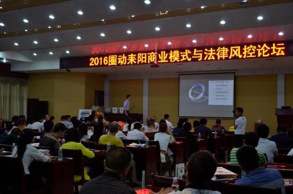 2016圈动耒阳商业模式与法律风控论坛,26日在耒阳隆重举办。由深圳前海乐汇购科技有限公司、耒阳市法邦法律咨询有限公司、耒阳市亮剑建材科技有限公司主办。深邦餐饮管理有限公司、耒阳市邦尼佳水电工程安装有限公司、耒阳市中亿宏旺融资服务有限公司、耒阳市铁甲卫士防盗监控有限公司方为承办。