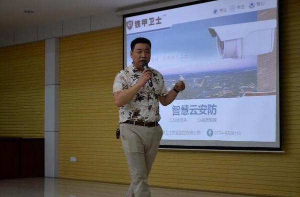 耒阳市铁甲卫士防盗监控有限公司负责人刘显金对公司的新研发的视频监控做了简单的介绍。据了解,在本地安防行业是数一数二的, 在联网报警的基础上不但可以使用微信公众平台布/撤防,还开发了视频监控系统。刘总称公司立足耒阳向全国发展。