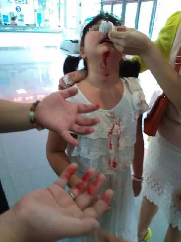 一名家长提供的其孩子不停流鼻血的照片。