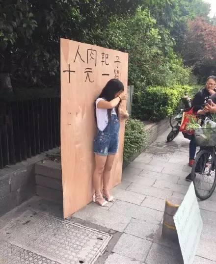 5月23日,吉佳丽在杭州闹市区的武林广场挂出“人肉靶子,十元一箭”的标语。