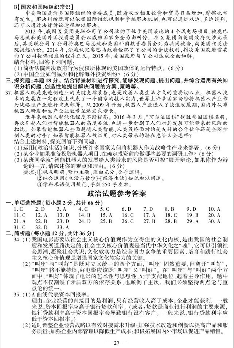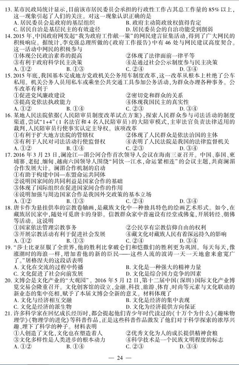 全球资讯:2016年江苏高考试卷及答案——政治