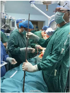 抢救现场,经医生检查发现,该男子意识清楚,鼻腔口腔有鲜血流出。钢筋从男子的右阴囊插入,途经泌尿系统,伤及腹部的肝脾,紧贴心脏和颈动脉贯穿而过。从咽喉直插入口腔,舌头,上颚经鼻腔,插入大脑,最后钢筋从头顶穿出。“钢筋离心脏和颈动脉只有几厘米,这两个部位都是要命的,伤情极其凶险。”当时参与抢救的医生表示。