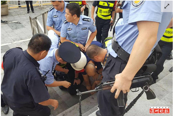 6月16日17时许,龙岗公安分局罗岗派出所接群众报警称,一男子在龙岗大道某酒店旁持刀挟持一名女子。接报后,罗岗派出所立即指令路面警力迅速赶往现场处置,同时所领导马上组织值班警力前往增援。