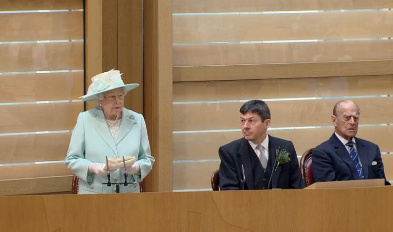 英女王在苏格兰首府爱丁堡参加第5届苏格兰议会开幕式上。
