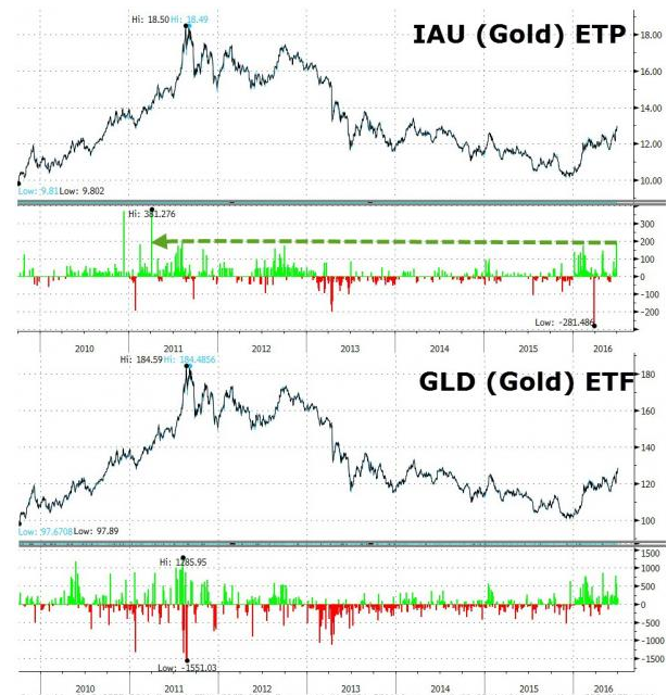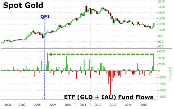 尽管英国退出欧盟的公投决定带来了巨大的影响,但是黄金ETF资金大量的流入确是突然发生的,上一次黄金ETF资金流入量如此之大是在美联储开启量换宽松计划之时。