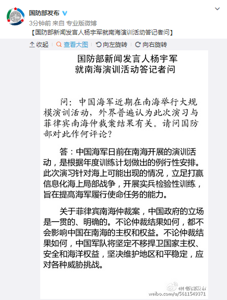 核心提示:全球报道:国防部 中国军队将坚定不移捍卫国家主权和权益