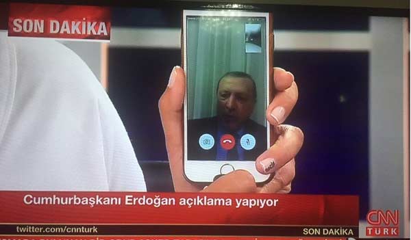 目前的消息是,军队还没有逮住埃尔多安,但这位大权独揽16年的“土耳其普京”只能凄惨地通过iPhone 的Facetime连线CNN求助外部,表示自己仍然是土耳其总统与军队总司令。