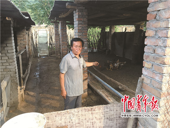 蒲县黑龙关镇养羊农民杨元眼用卖羊后空下的羊圈养起了鸡。中国青年报·中青在线记者胡志中/摄