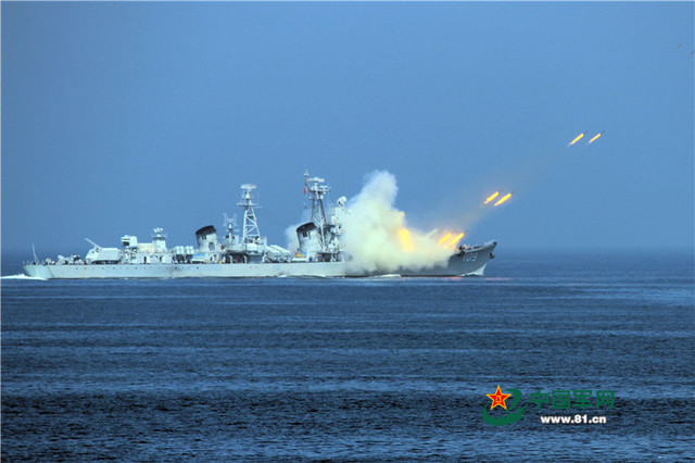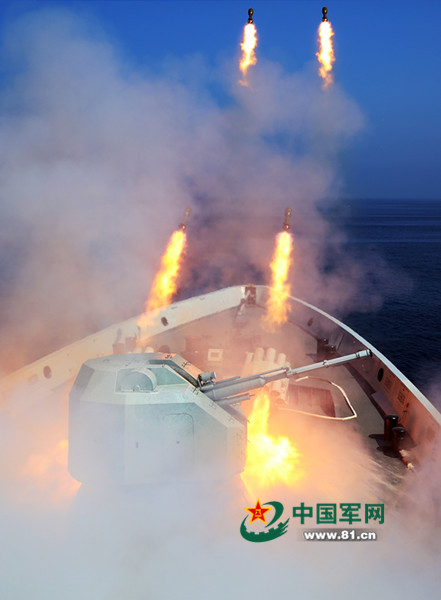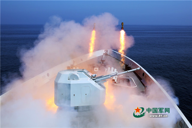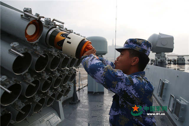 大庆舰发射火箭深弹。张海龙摄