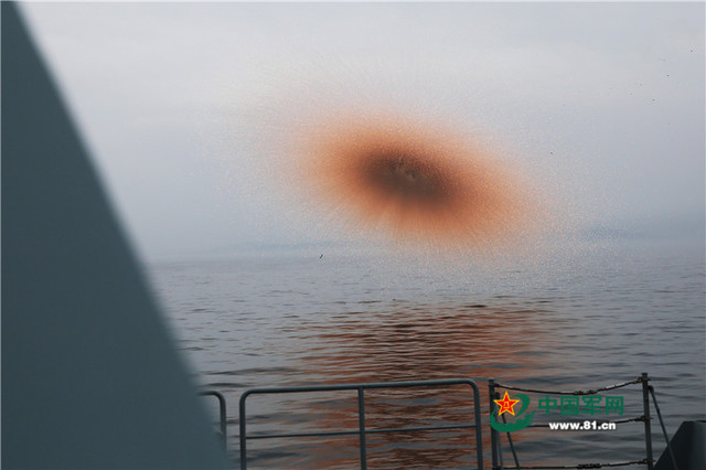 训练中,他们按照“港岸苦练,海上精练”的组训思路,精心设置逼真“海战场”。在连续四天的实兵实弹训练中,他们先后完成了主炮对海射击、副炮对空射击、海上轻武器射击、舰艇综合攻防等7项实弹射击训练任务和20余项部署操演,有效检验了舰艇编队在高强度立体火力对抗中遂行作战任务的能力。 大庆舰发射火箭深弹。张海龙摄