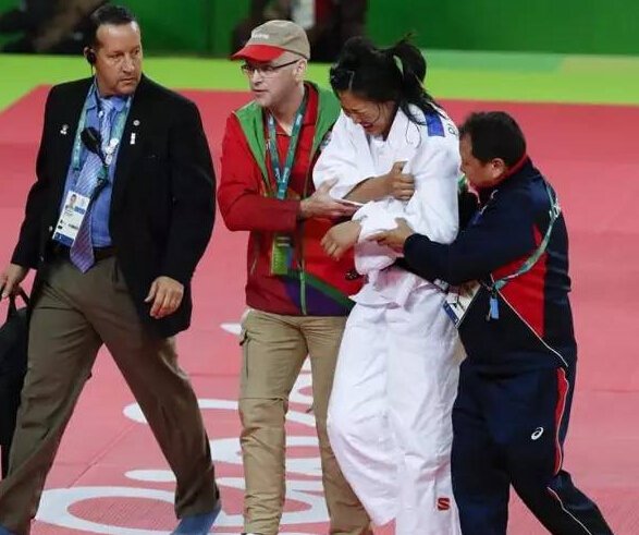 8月11日,蒙古国柔道选手普列布扎尔嘎勒在比赛中受伤离场。