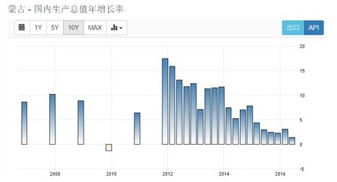 蒙古2011年经济增长达到17.3%,全球位居首位,但如今经济增长率已经降到1%左右,货币在过去四年里贬值高达58%,今年上半年蒙古国全国的有13万多家注册的企业中有6万多家已经停业或者是停产了。