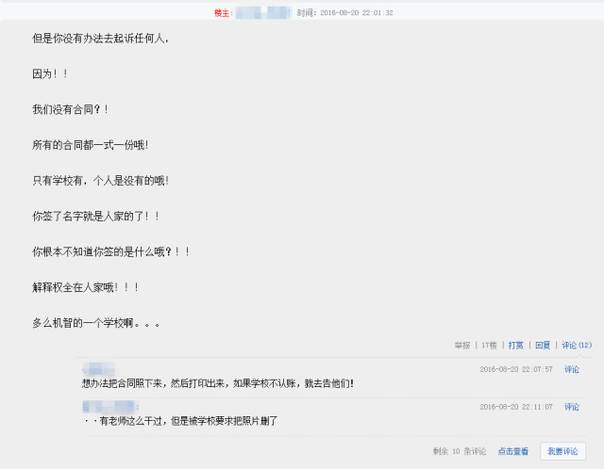 再比如学校招聘老师时合同只有一份,老师们手里没有合同,曾有老师给合同拍照,被学校要求删除照片。
