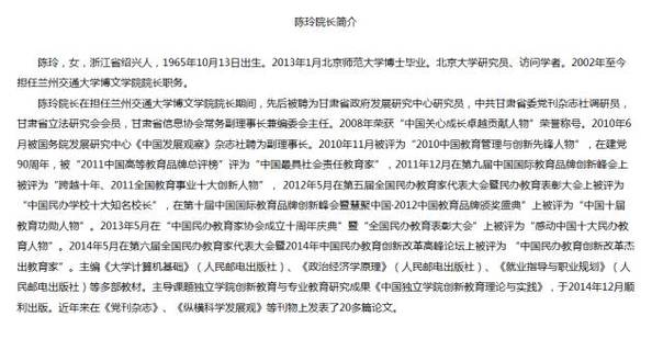 网上关于博文学院的黑料,总少不了一个人的身影,即博文学院的院长陈玲,从2002年开始至今,她一直担任此职。
