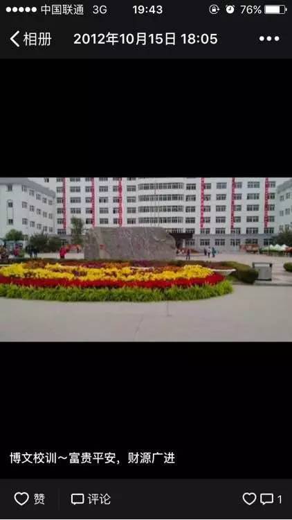 有网友在网上公布了一张博文曾经的校园照片,画面中有一块大石头,石头两面分别写着“富贵平安,财源广进”,网友调侃,这是博文的“校训”。
