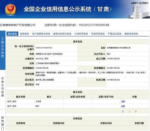 兰州国土规划部门的一位工作人员表示,印象中没听说过有一家叫建坤的房地产公司,“有可能是我了解得不够多,但也有可能这就是个皮包公司,有了公司的资质才能投资开学校。”建坤2013年度报告对外投资信息显示,该公司投资了兰州交通大学博文学院,注册号\统一社会信用代码为72026632。