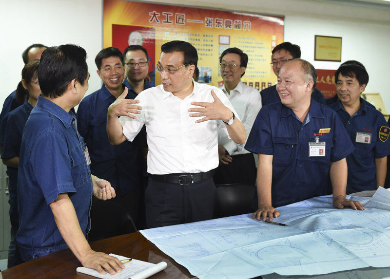 9月23日至25日,中共中央政治局常委、国务院总理李克强在河南考察。这是9月23日,李克强在洛阳矿山机械厂同工人们亲切交谈。新华社记者谢环驰摄