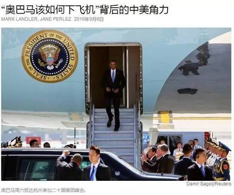 此外,纽约时报给出了“简单而复杂”的现场状况,声称中方拒绝提供说英语的舷梯车司机,直到快降落才同意美方使用自己的客梯致使奥巴马“钻小门”。