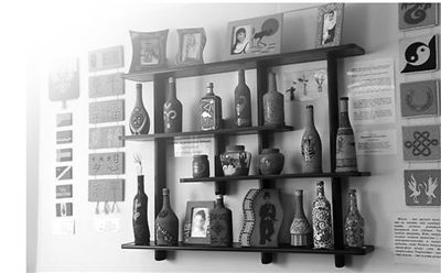 在“海洋”儿童中心主楼的手工制作室,墙上的架子陈列着各国孩子们的作品。 |