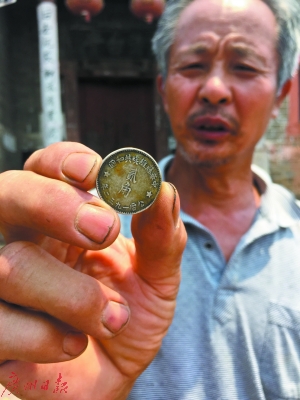 白石渡老湾村村民邝日皓讲述苏区硬币的来历。