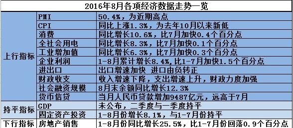 8月,我国包括PMI、CPI、工业增加值、社会融资规模等在内13项宏观经济指标,有10项呈现上行态势,GDP和固定资产投资指标与上期持平,仅房地产销售出现下行。而同样的一组指标,在6月、7月仍以下行指标为主,充分说明当前我国经济总体有企稳向好的底气越来越足。