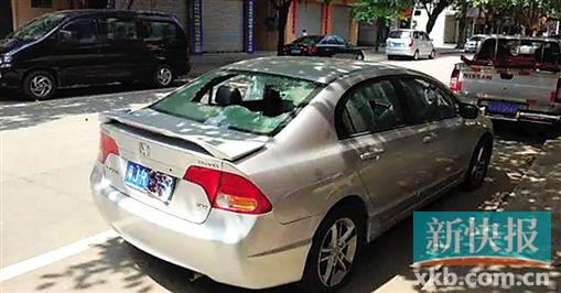 ■江门恩平市恩城美华西路被砸轿车。受访者供图