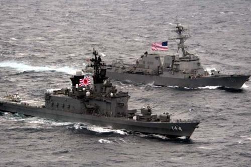资料图:日美军舰进行联合军事演习。