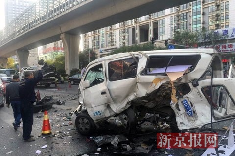 事故现场,涉事车辆损伤严重。新京报记者赵凯迪摄