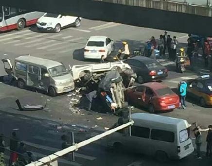事件:朝阳区北苑路和春华路交叉口,多辆等待红灯的车辆遭到后方一辆奥迪车冲撞,事故共造成1死4伤