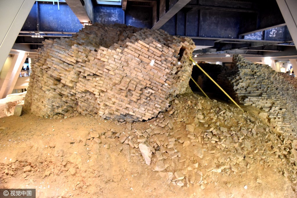 而就在游客身边的玻璃墙上,赫然写着“保护遗址,请勿抛物”8个大字。