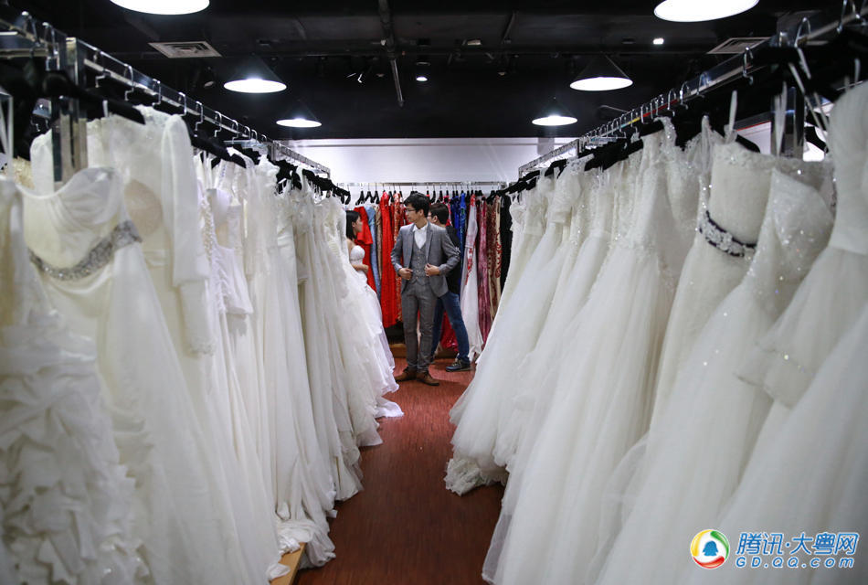 婚礼前几天,王锐旭和甄蔼仪正在试穿婚礼礼服。锐旭是汕头人,在广州办完婚礼后,还要回老家汕头按那边的习俗再办一次,为此他需要为两次“婚礼”各挑一套衣服。在广州请客后再回老家请一次,不少“广漂”结婚时都会这样做。 (来自:腾讯大粤网)