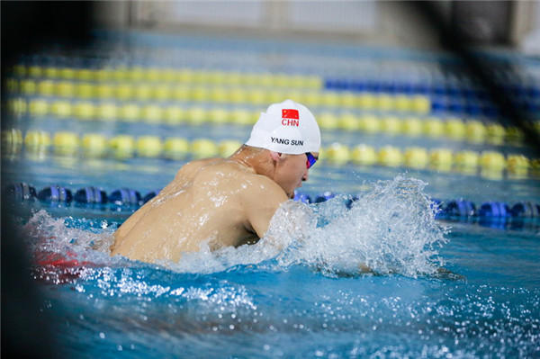 孙杨游泳,酣畅淋漓。 (来自:腾讯娱乐)