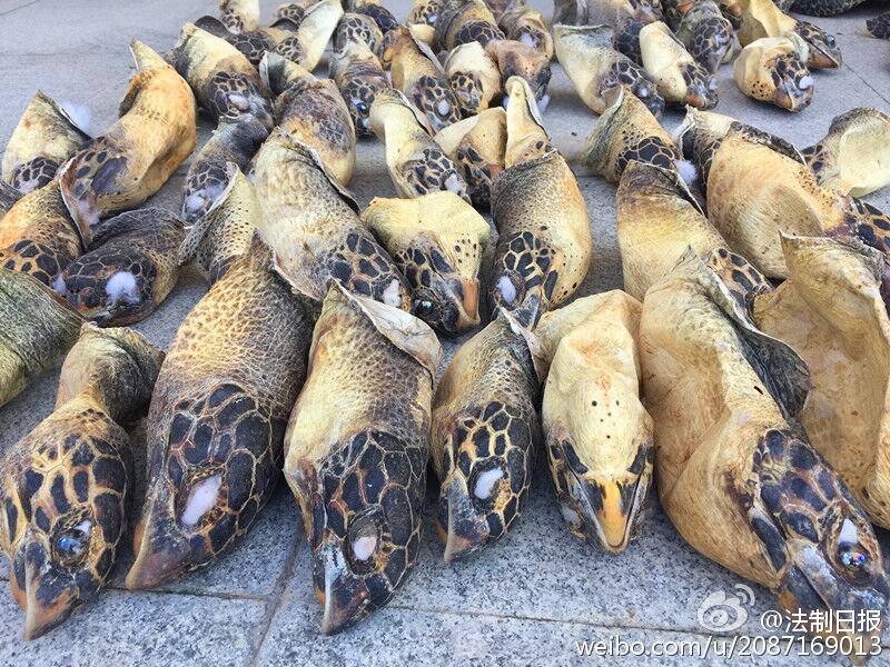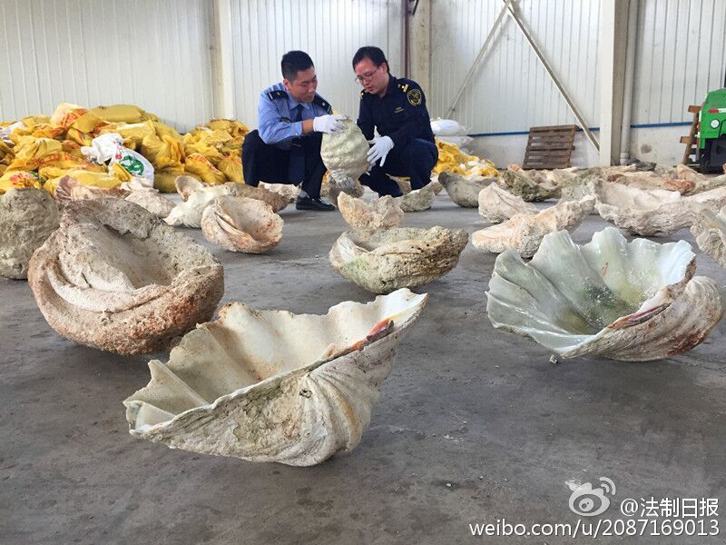 109只头身分离已被掏去内脏的玳瑁,17吨素有“贝类之王”的砗磲部分被七零八落地切割为块状;1100个外形独特美丽的唐冠螺……呈现在记者面前的这些国家一二级保护动物,正是南宁海关下属凭祥海关查获的一起特大走私珍稀野生动物制品案中缴获的。 (来自:法制网)