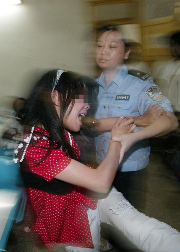 家庭贫困,缺乏教育机会,导致缺乏社会经验的未成年少女进入社会时极易被人利用。2002年,刚满15岁的湖南湘潭县少女刘英(化名)怀着美好的憧憬,在同村一对“好心夫妇”的怂恿下北上重庆打工。但等她察觉时,却被拐卖到广东汕尾市一发廊卖淫。在打手的严密看管下,刘英度过了50余天梦魇般的生活。图为被警方救回的刘英。