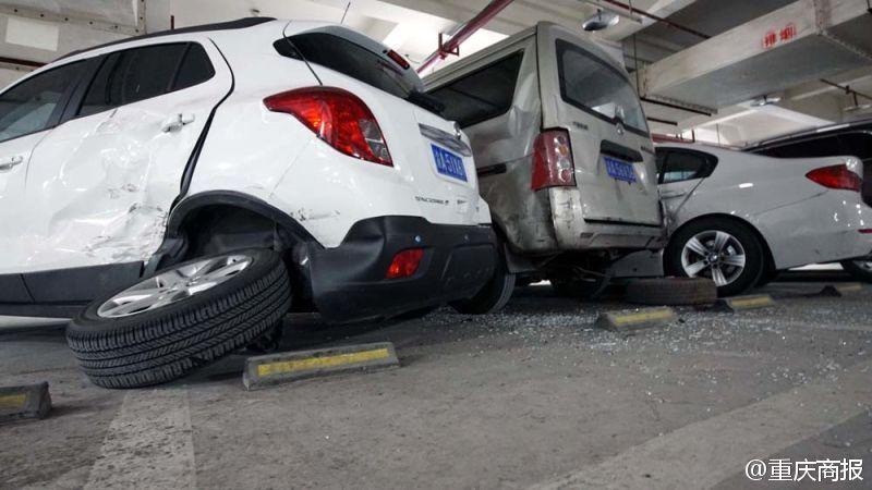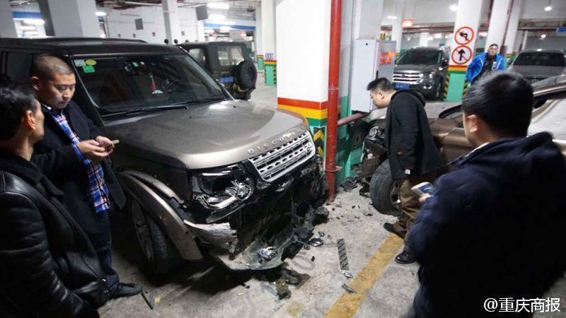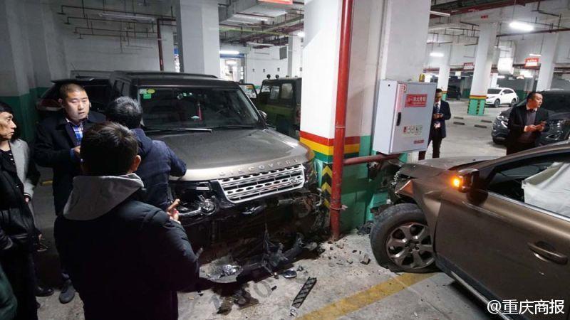 随后杨女士将车开上负二层后在转弯处撞又到了三辆停靠的小车。最后车辆行驶到出口附近时撞向了包括陆虎在内两辆车后撞倒消防栓才最终停了下来。“车子在冲上负三层后我完全控制不住了,停不下来,我当时都吓懵了。”杨女士称。