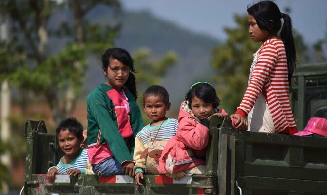 中国和缅甸国界线长度超过2000公里,持续的内战大多发生在缅甸北部的中缅边境线附近,每次战争爆发,都会有大量的难民逃到中国境内避难。图为中缅边境乘车逃亡中国的难民。