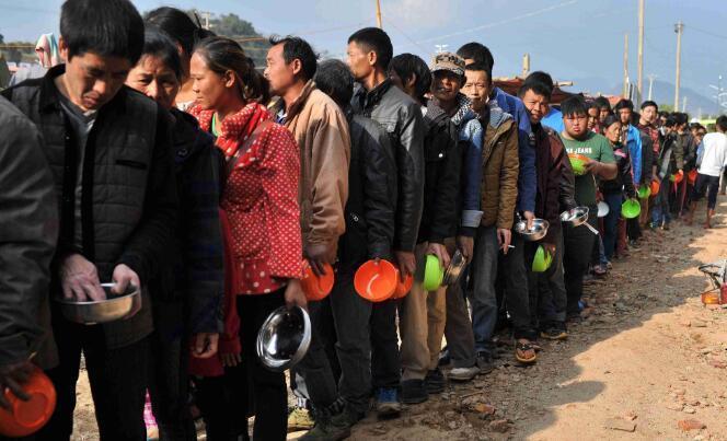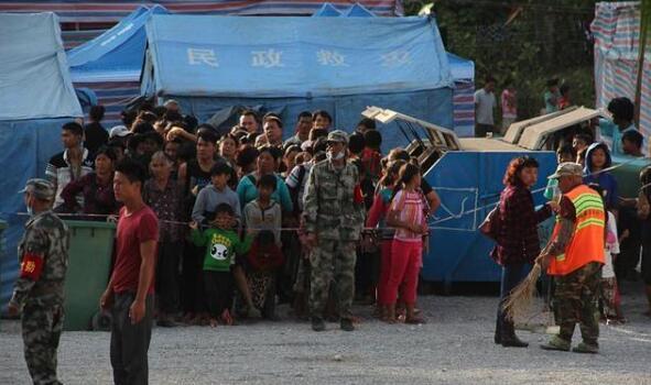 早在2009年8月,果敢内战,南伞镇曾经云集了万余果敢难民。此次内战,形势更加激烈,南伞再次成为果敢难民聚集地。图为中缅边境缅甸果敢境内排队吃饭的难民。