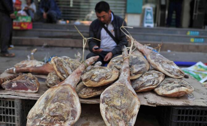 南伞镇,隶属镇康县,地处镇康新县城所在地,是云南省西南边陲的一个边境小镇,中缅边境中段,国境线长47.583公里。南伞是古西南丝绸之路重要通道,为对外开放的内陆窗口,是中缅物资的集散地,是中缅交往的重要通道和滇西南、临沧西部进入东南亚的重要口岸之一。图为南伞街头集市上卖火腿的商贩在看手机。