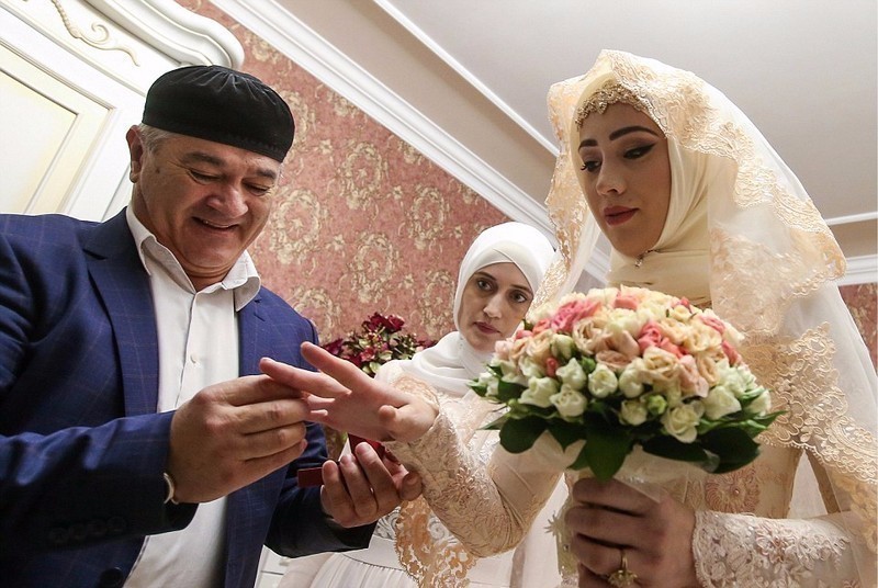 在婚礼的第三天,伊斯兰教士毛拉会在新郎家中主持传统的车臣婚礼仪式。仪式上,新娘的叔叔会为新娘带上戒指,而新郎会去注册处登记。