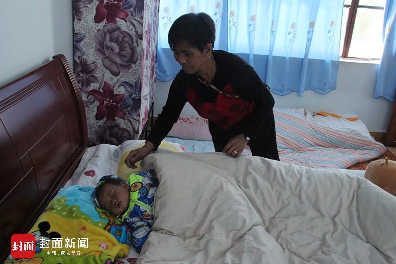 黄春华给5个月大的孙儿盖被子,这是孩子生命中经历的第一次逃亡