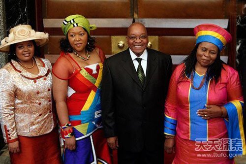 南非祖鲁族人数量众多,妻子的多少是祖鲁男子地位高低的象征。据了解目前南非总统祖马共有六位合法妻子。