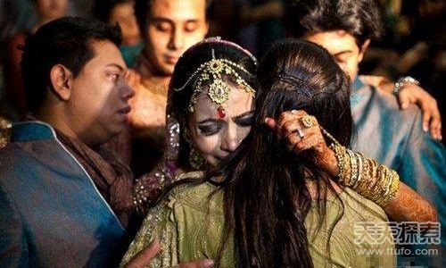 孟加拉国实行娶妻子缴税制度,只要你有钱能缴税你就可以多娶妻子,第一个妻子免税,第二个妻子交1万塔卡,第三个妻子3万塔卡,第四个妻子4万塔卡……以此类推。图为新娘向娘家哭别。