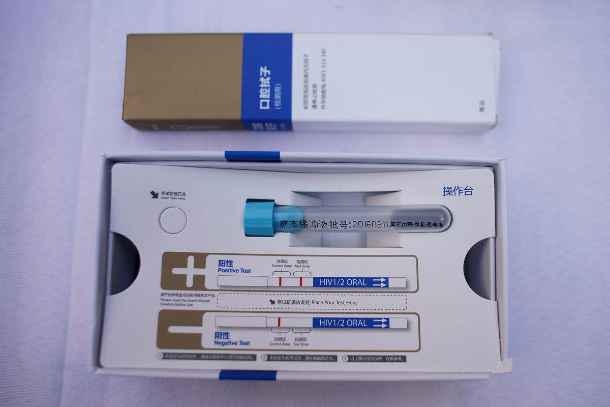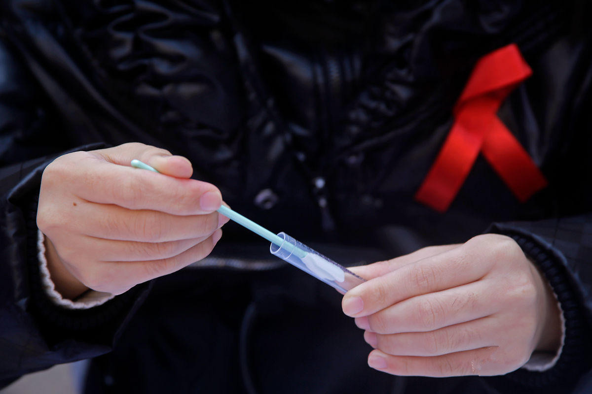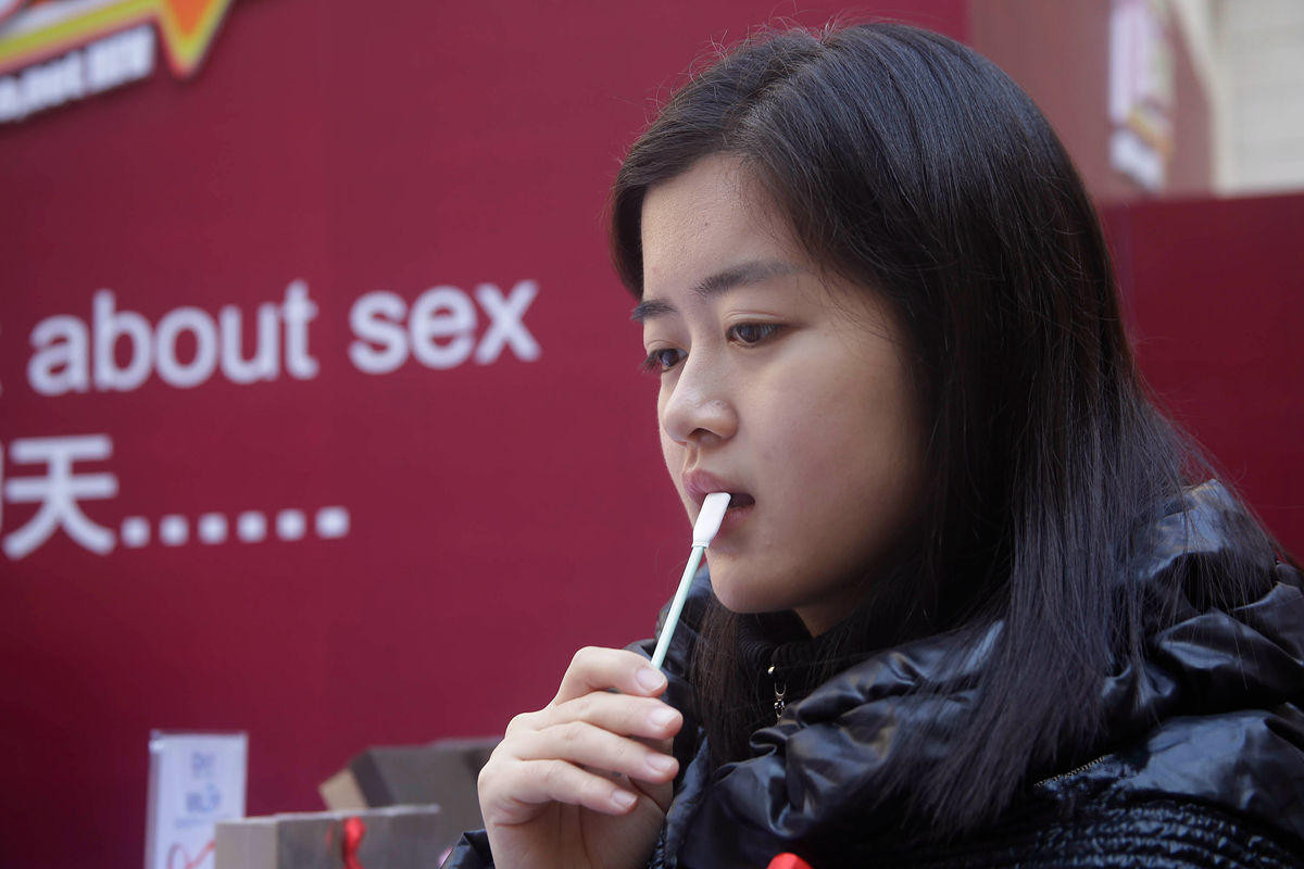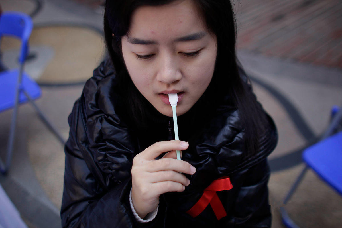 一名市民体验艾滋唾液检测。