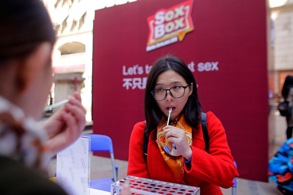 11 月 27 日,武汉光谷步行街上举行了一场以 " 重视性行为安全,正视艾滋病传播 " 为主题的趣味公益活动。众多市民受邀进入一个神秘的盒子内,与主持人畅聊 " 你的性,安全吗?" 这样的热辣话题,并免费体验艾滋唾液检测。