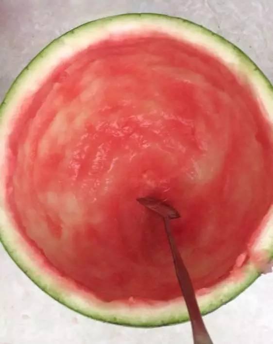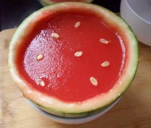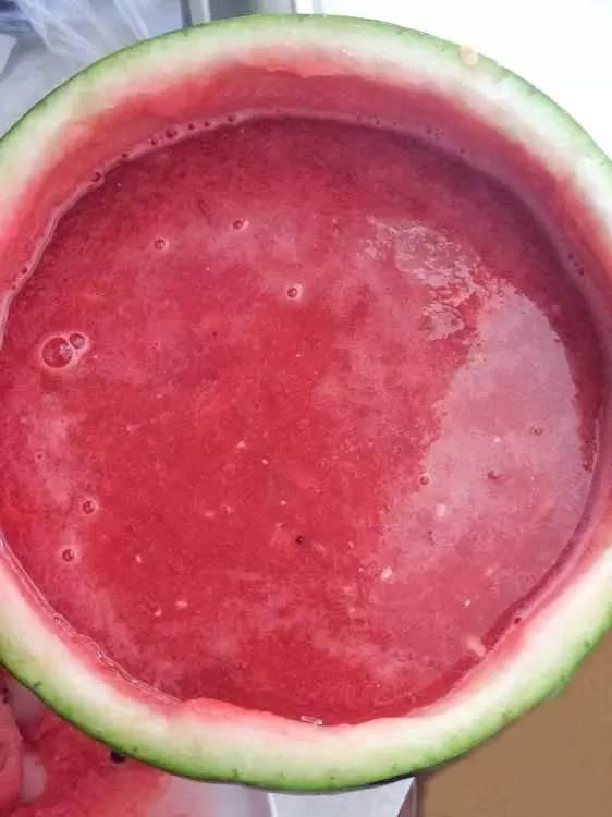步骤2:最好能把西瓜榨成汁,如果没有榨汁机,就尽量把果肉压碎。