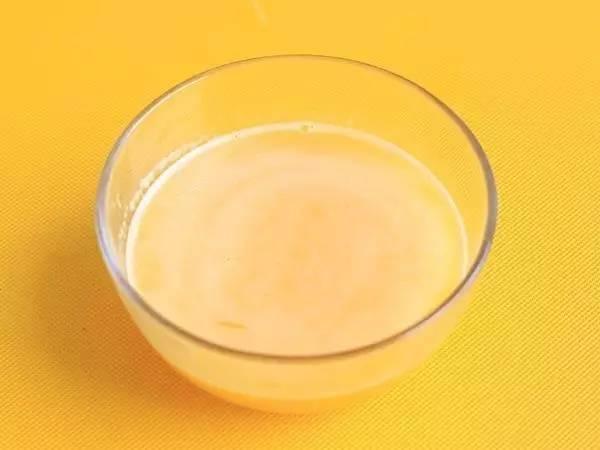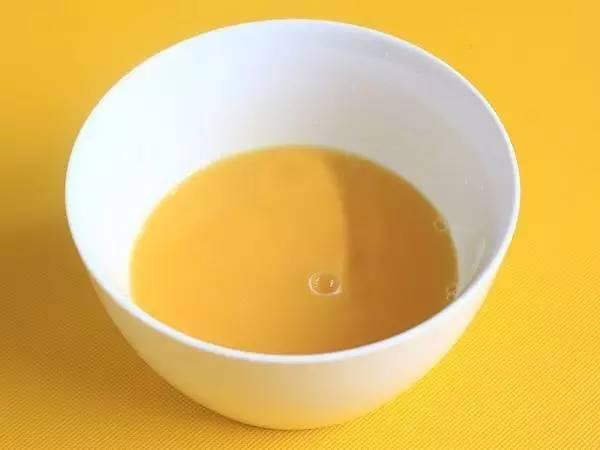 步骤4:待温度到60℃左右(不烫手)时,将液体直接倒入橙皮碗中(也可以先过滤)。