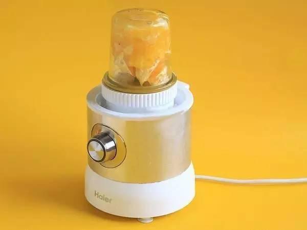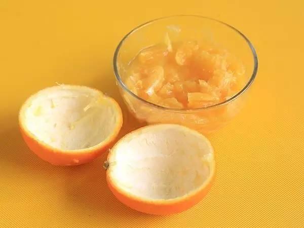 步骤1:橙子洗净后擦干,对半切开,挖出橙肉,橙皮留用。把橙肉放入搅拌机搅打成泥。