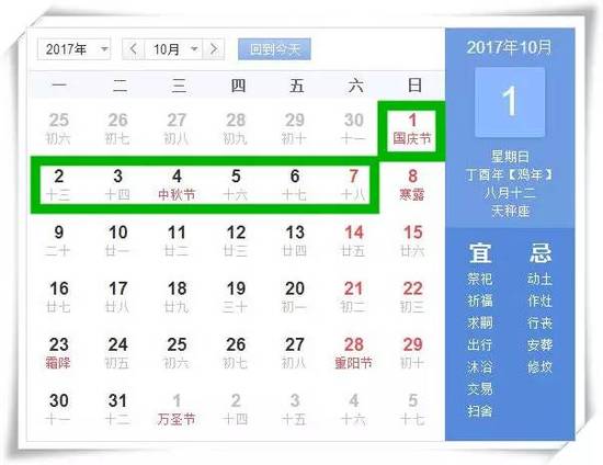 六、中秋节、国庆节:10月1日至8日放假调休,共8天。9月30日(星期六)上班。